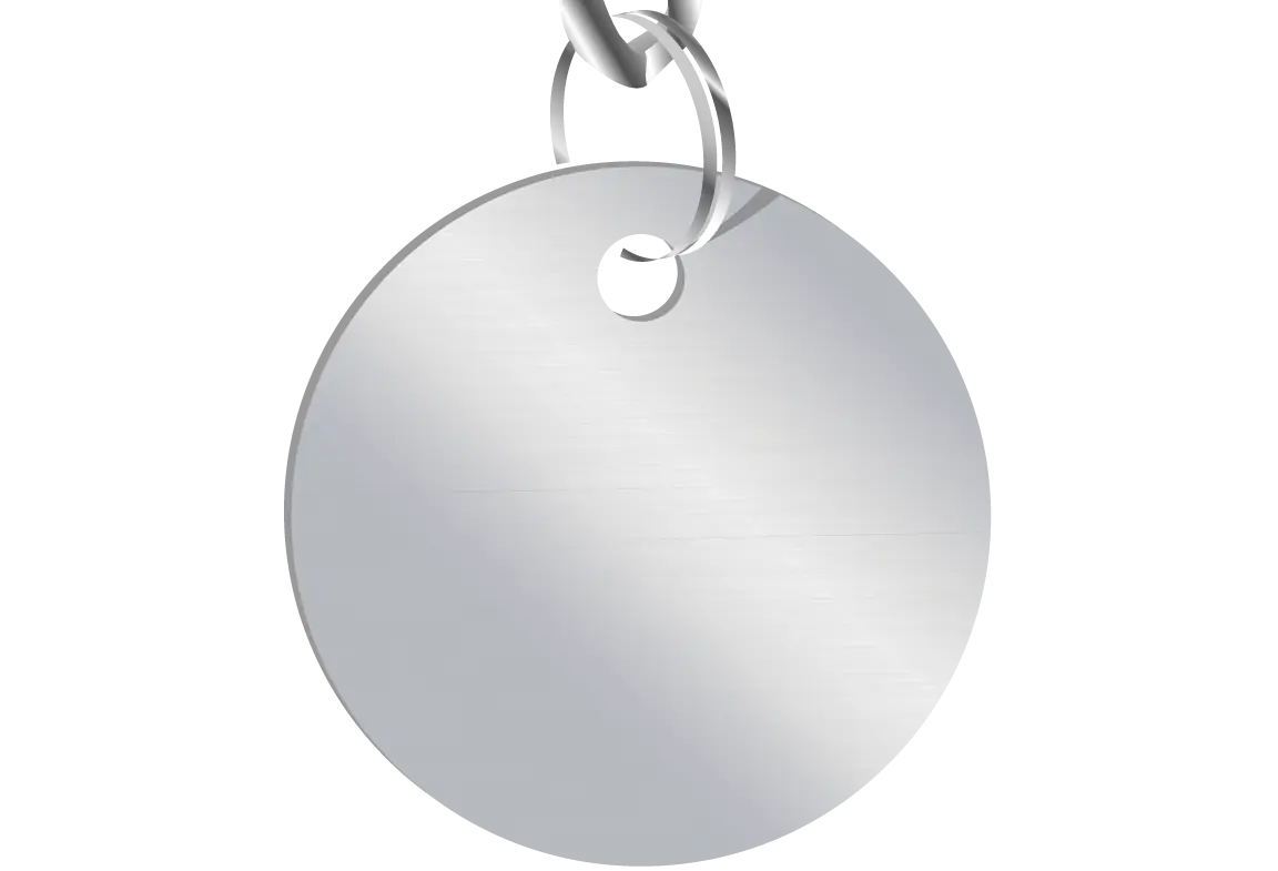 Брелок круглый с персональной гравировкой и соединительным кольцом. Доступен в четырёх цветах.