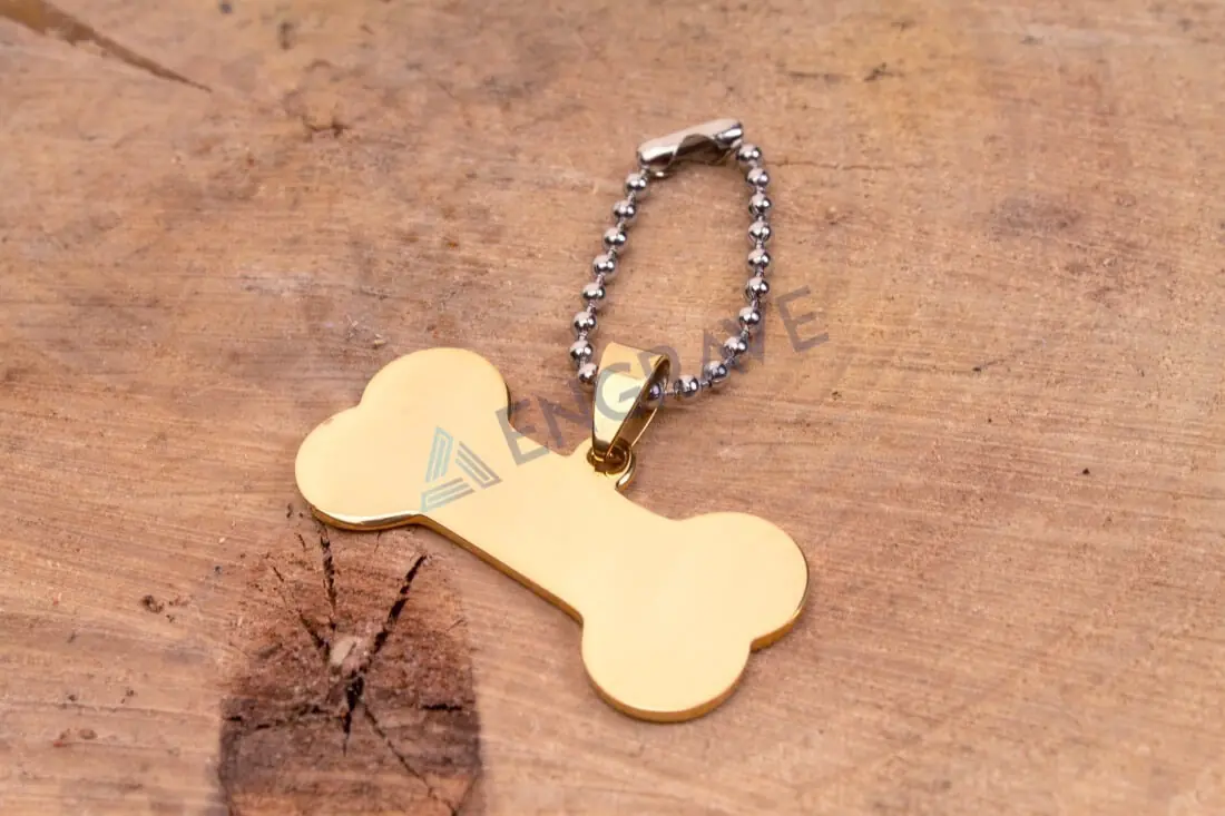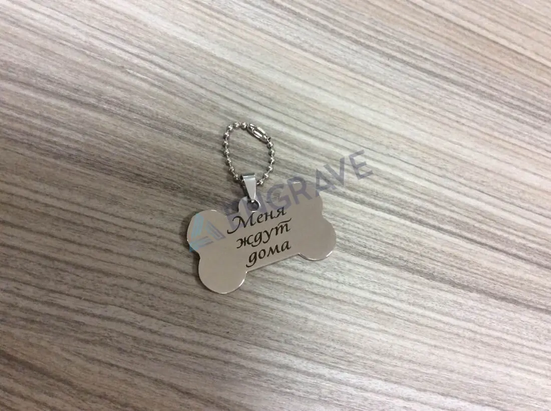 Стальная косточка с гравировкой, стальное кольцо для крепления.