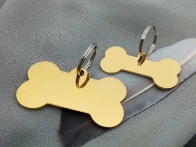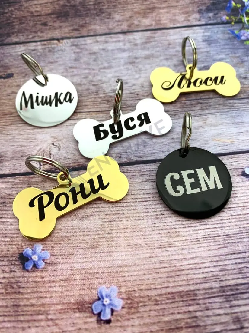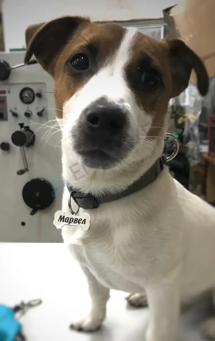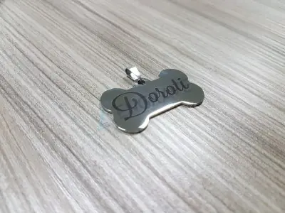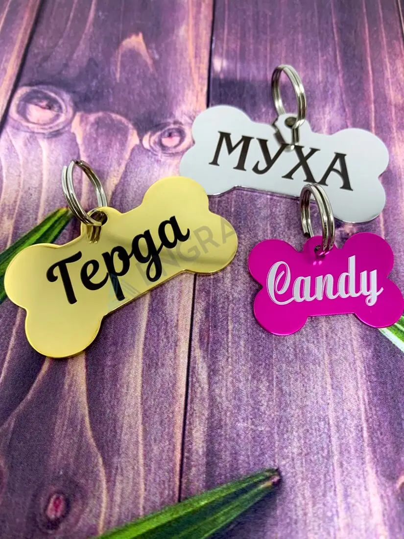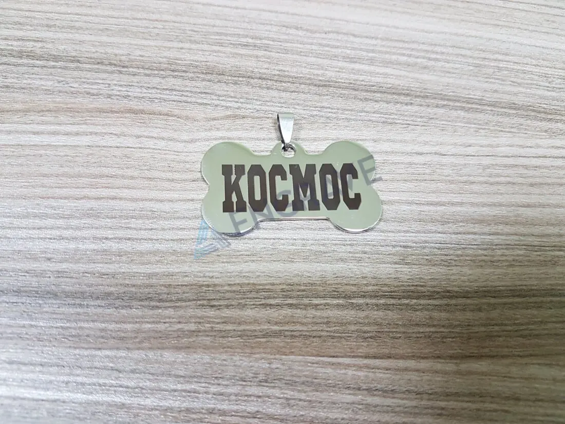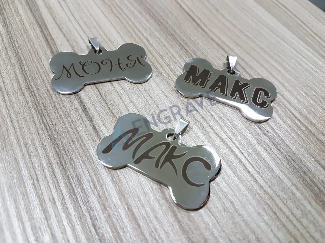 Мы изготавливаем металлические адресники для собак, с лазерной гравировкой контактных данных. Материал, который мы используем – нержавеющая сталь 316L ювелирного качества. Эта специальная сталь полируется до глянца и отражает как зеркало. Такой блестящий dog tag хорошо заметен на животном, и повышает его шансы на спасение. Дополнительно мы предлагаем цветные опции из тонкого металла – для маленьких собак, или собак покрупнее.