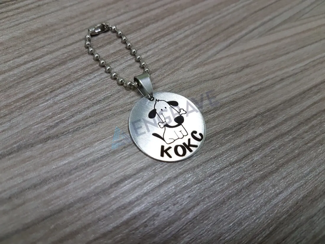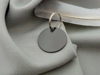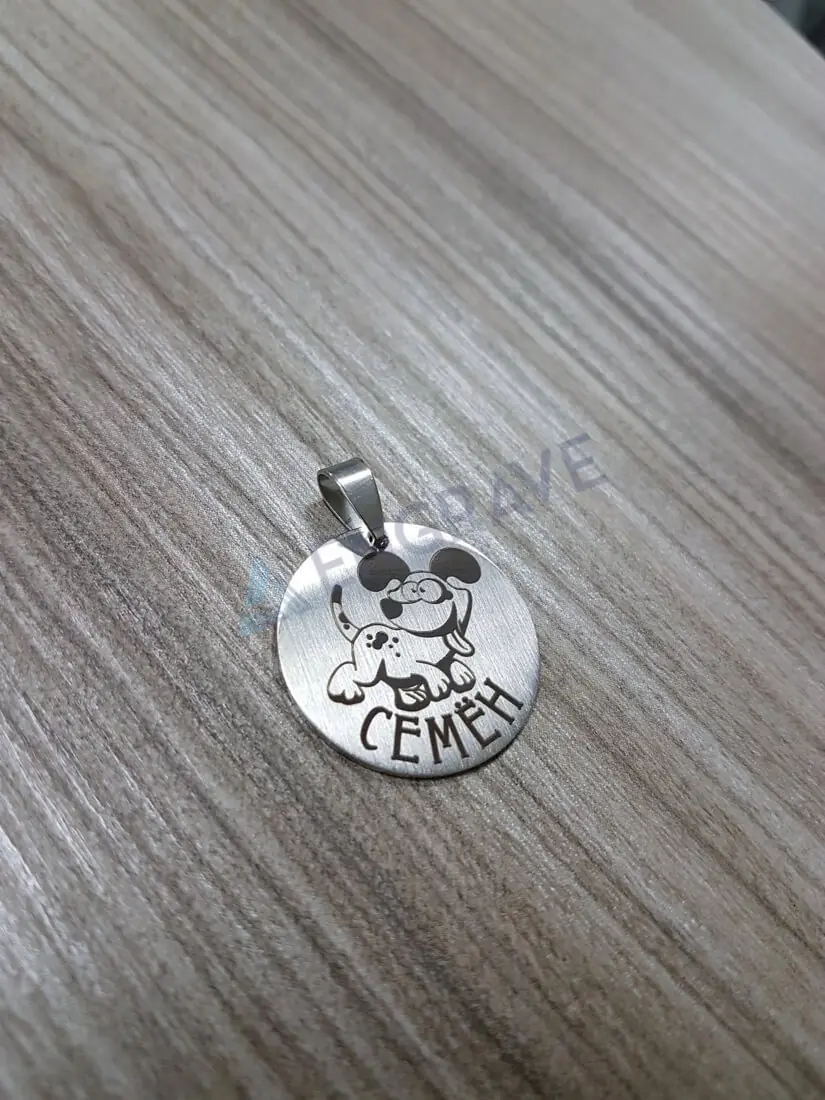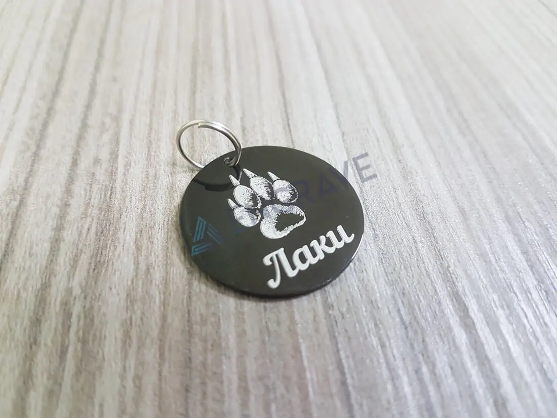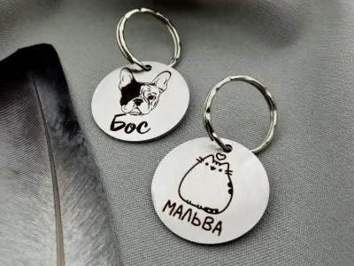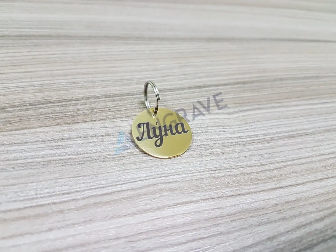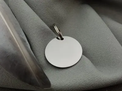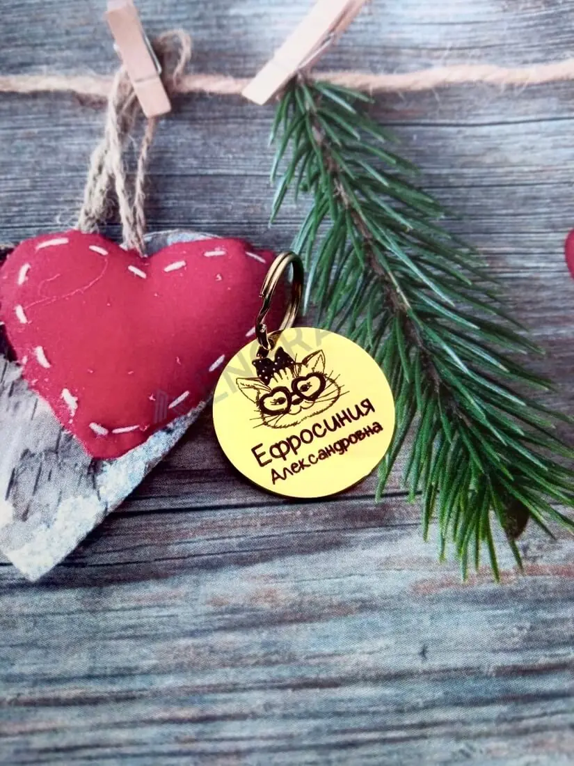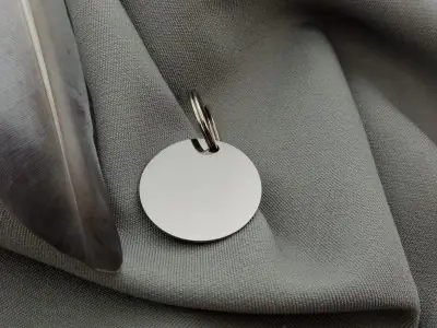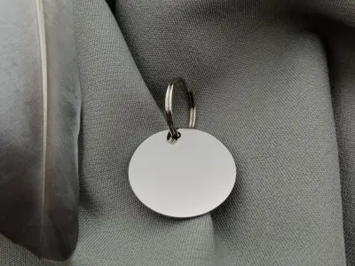 Круглый адресник с гравировкой, стальное кольцо для крепления.