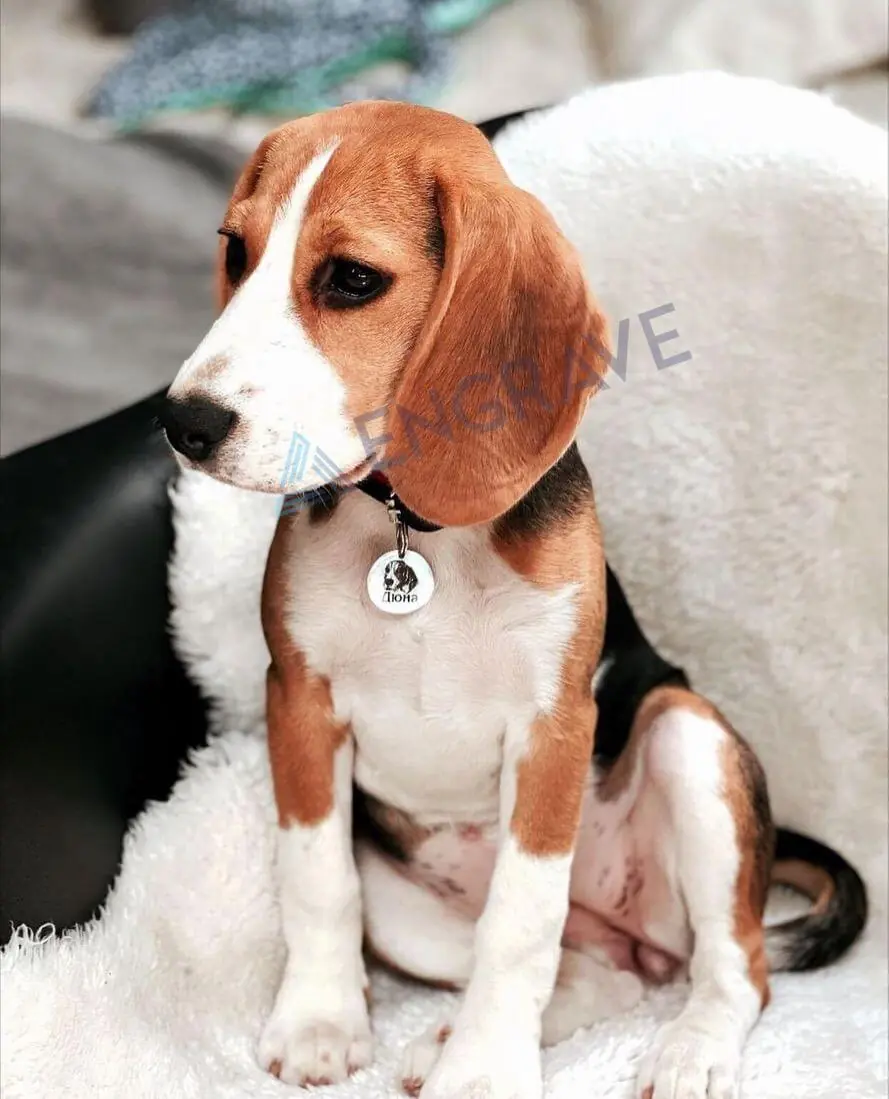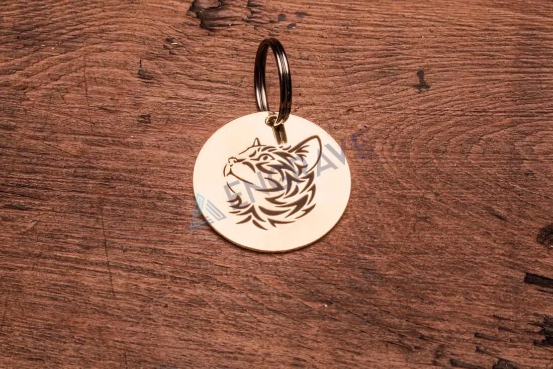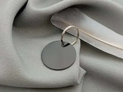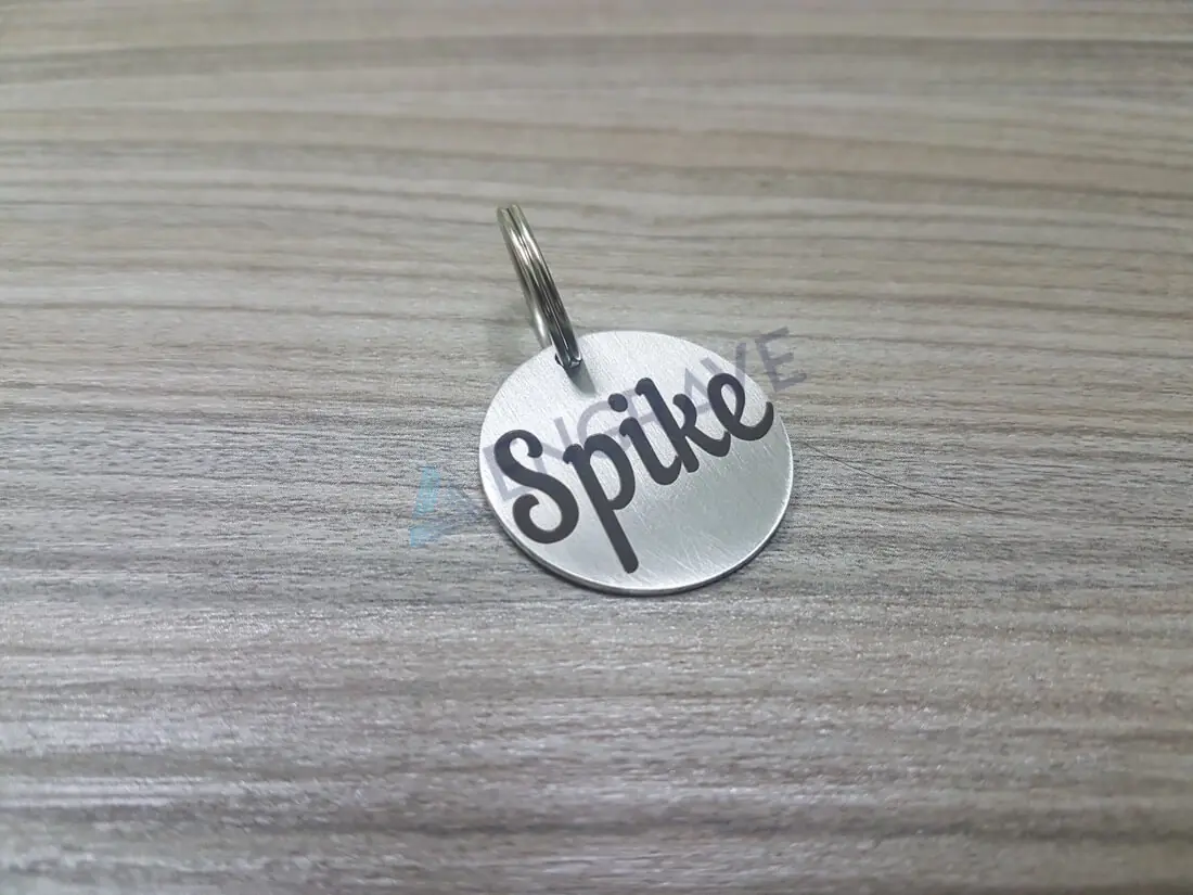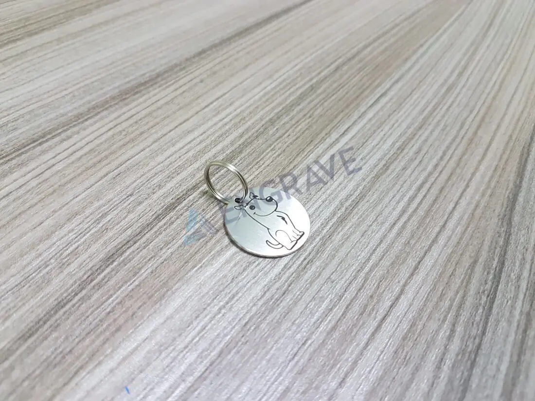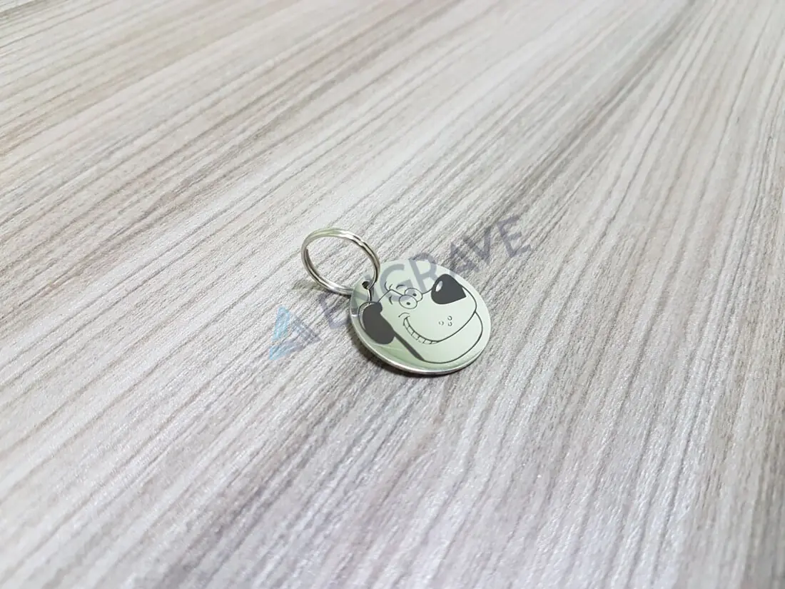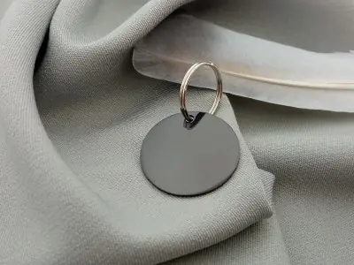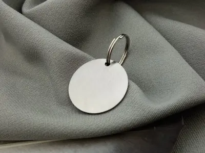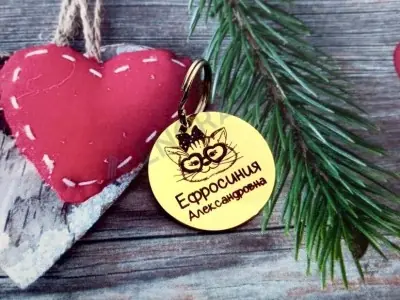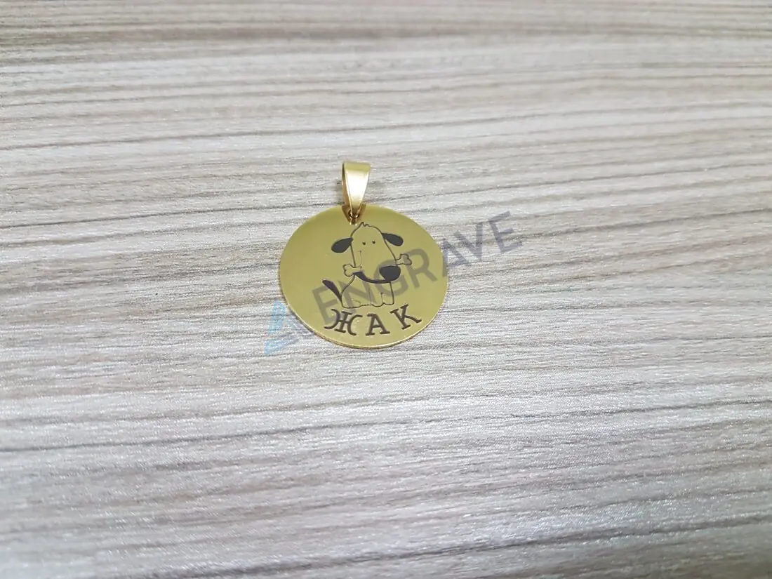 Круглый адресник с гравировкой, стальное кольцо для крепления.