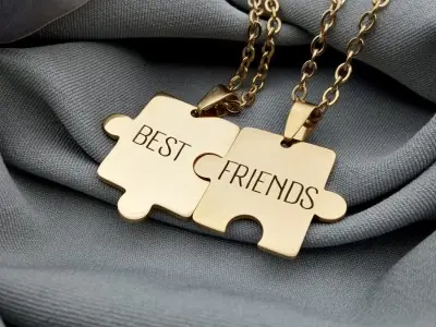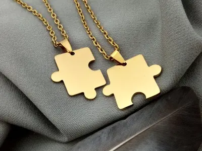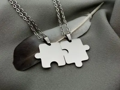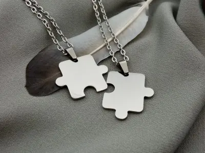 Кулон Пазлики - это прекрасный символ дополнения друг друга. Ваши имена, инициалы, значимые даты, искренние пожелания на любом языке и красивые изображения, награвированные сверхточным лазером, будут олицетворять замечательную историю крепкой дружбы или вечной любви. Доступен в двух цветах. В комплекте с кулончиками сразу идут цепочки.