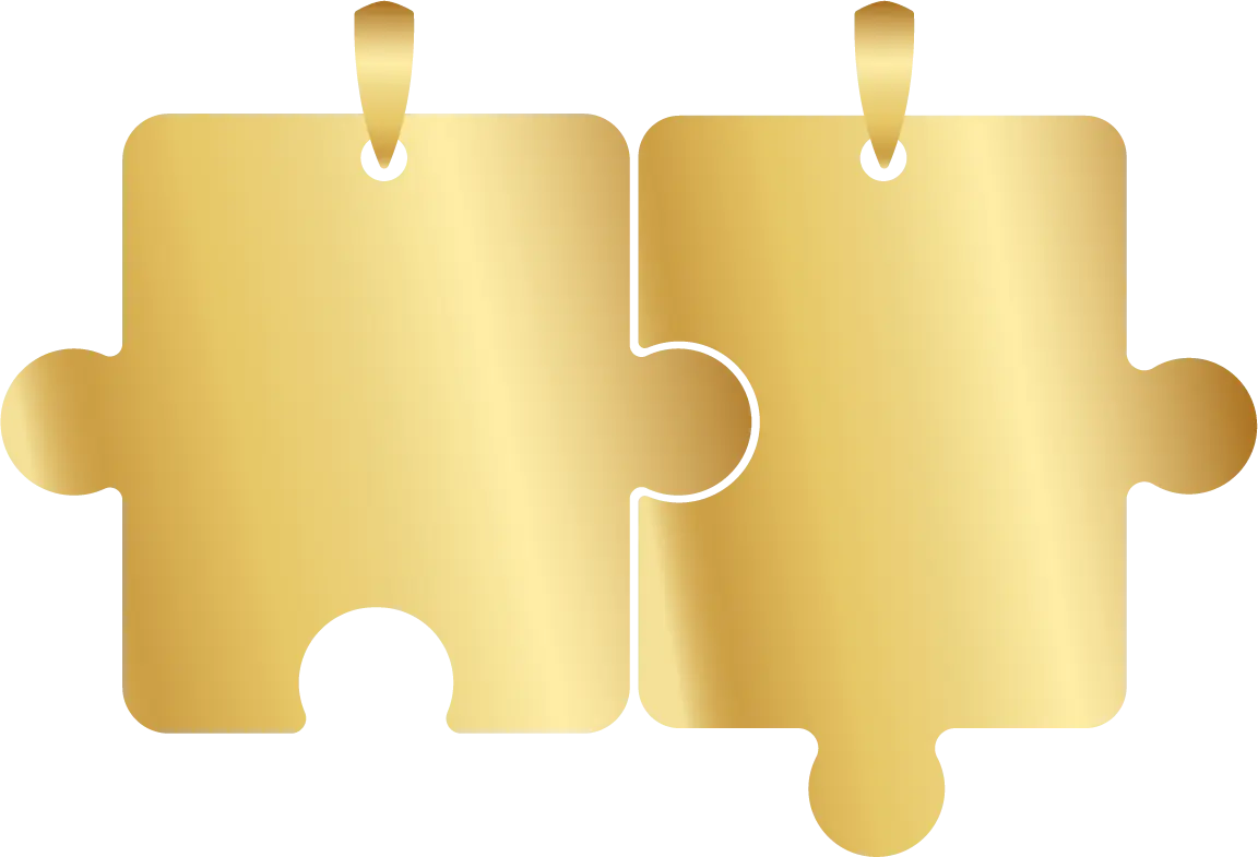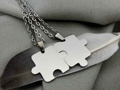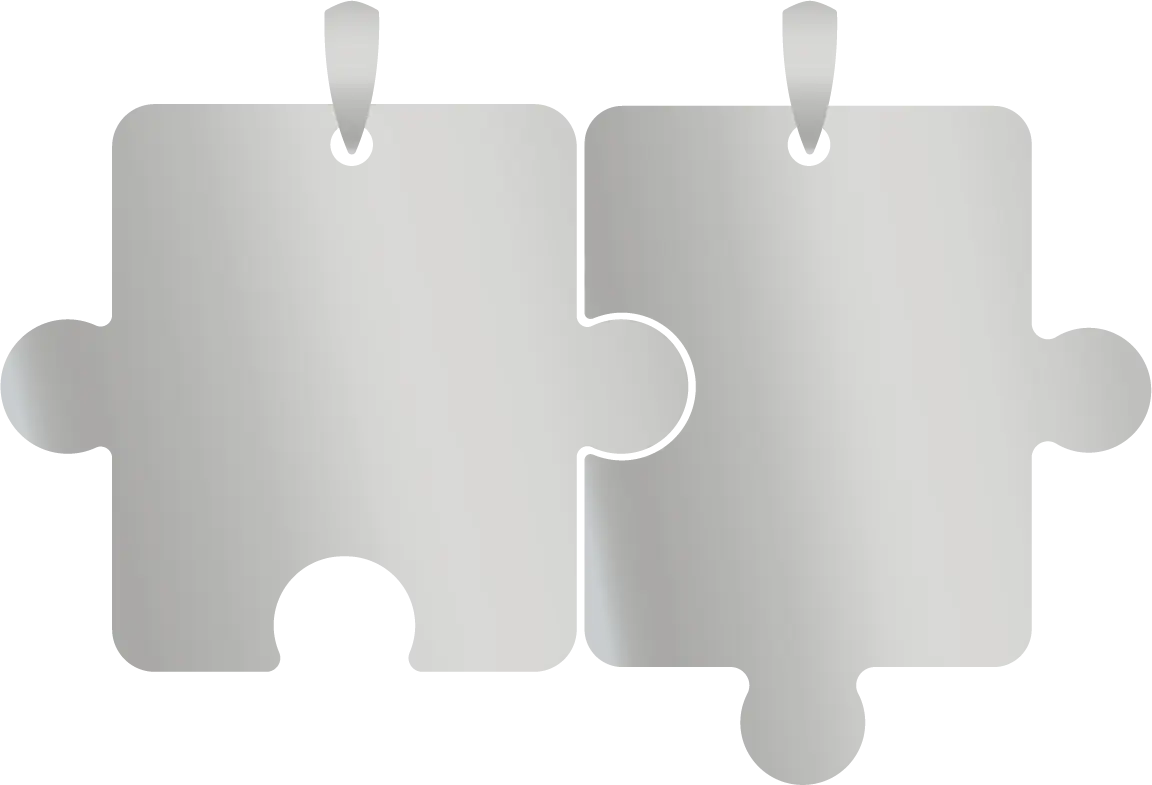 2 половинки пазла с гравировкой, 2 звеньевые стальные цепочки, клипса